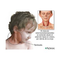Torcimiento del cuello, en el cual la cabeza apunta hacia un lado, mientras la barbilla o mentón está volteada hacia el otro. Esta patología puede ser hereditaria o adquirida, desarrollándose como resultado de daño al sistema nervioso o los músculos. Si la afección se vuelve crónica, se puede presentar entumecimiento y hormigueo a medida que las raíces de los nervios resultan comprimidas en el cuello.