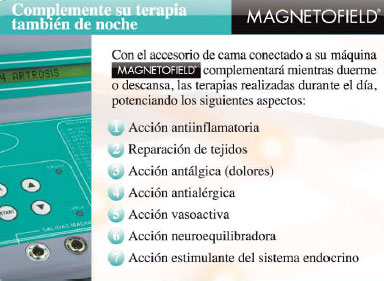 - Conectado a Magnetofield:Terapias prolongadas, más cómodas, aún si cabe, y de amplio contacto en nuestro cuerpo.