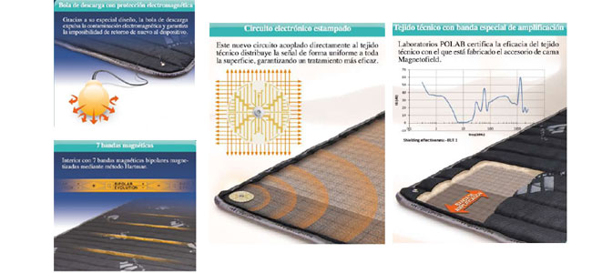 Tanto conectado, como no, el Accesorio de cama Magnetofield ofrece la máxima calidad terapéutica. Debido a la calidad de su tejido exterior y técnico interior, los beneficios que aportan a nuestro organismo serían: