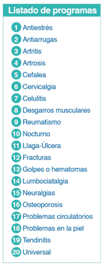 Magnetofield posee 20 programas para la aplicación de las 93 terapias para las que está preparado.