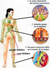 - Función trasportadora de grasas: lleva a la sangre grasas absorbidas en el intestino delgado.